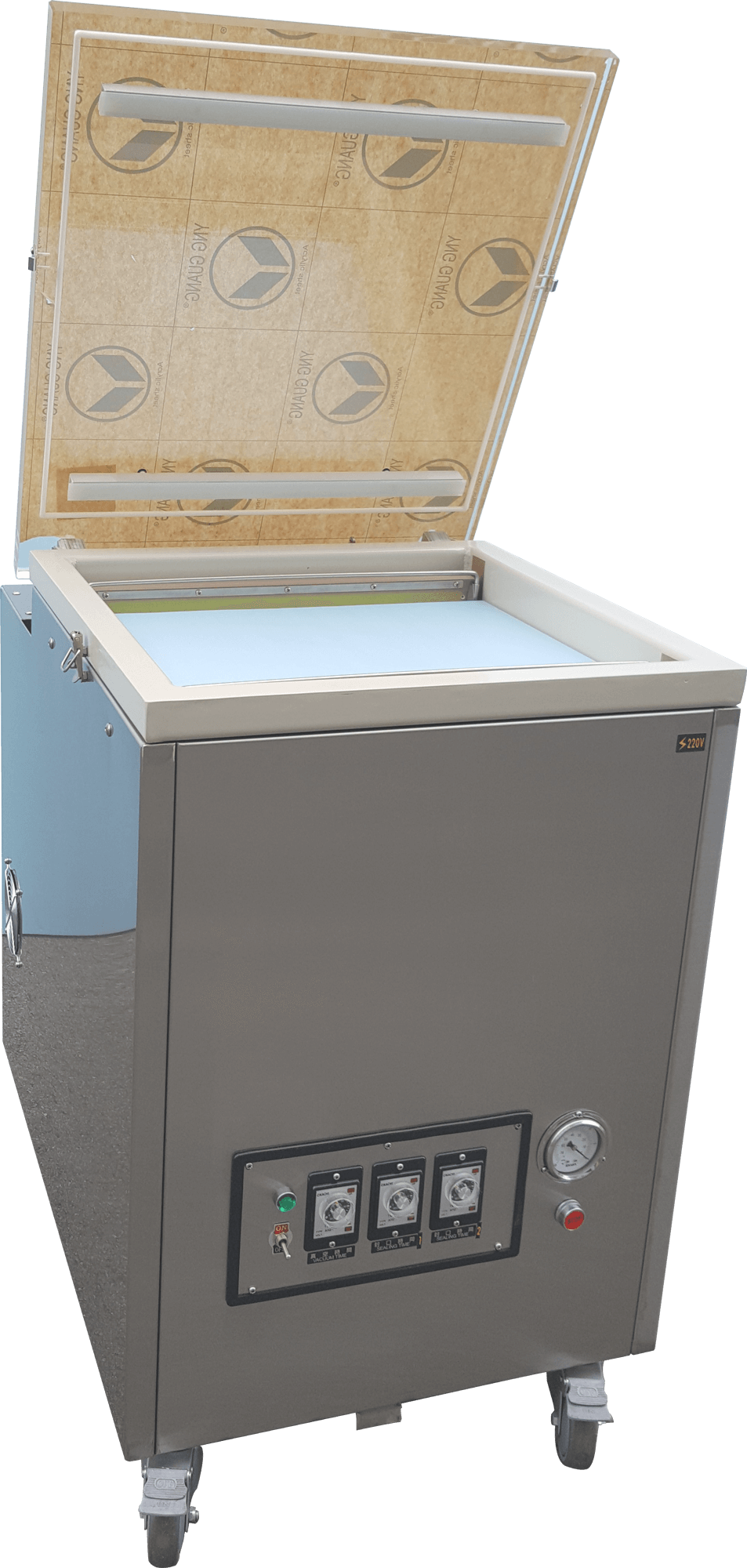 HC-16kg Power supply single phase220V vacuum pump 24m3/hr (600g tea bag. 16 bags once) (Huge packing: 18-24kg a bag. 1 bag once) machine size 690 x 890 x 910H(mm) vacuum size 530 x 780 x 260H(mm) sealing bar length 450 x 1 / 690 x 2(mm) ㄈ Beams machine net weight 175kg machine material machine body-stainless*304 chamber-coated steel -